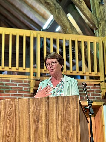 Die landtagsvizepräsidentin Janssen-Kucz hielt zur Eröffnung der Dauerausstellung „Zwangsarbeit für die Wehrmacht“ und der temporären Werkschau „Vor Vereinsgründung – Arbeiten zum KZ Engerhafe aus den Jahren 1987 – 2009“ von Herbert Müller ein Grußwort.