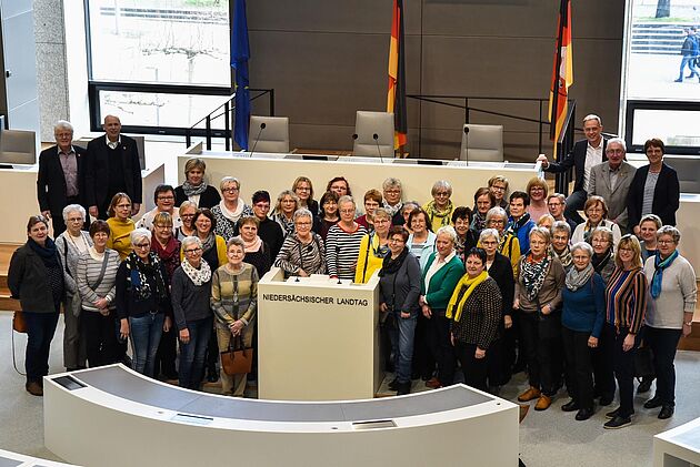 Heute waren im Rahmen der Frauenwochen in Großefehn rund 50 Frauen mit Bürgermeister Erwin Adams und der Gleichstellungsbeauftragten Andrea Henkelmann im Niedersächsischen Landtag. Der SPD-Abgeordnete Wiard Siebels und Meta Janssen-Kucz haben sie begrüßt und einiges aus dem Alltag von Landtagsabgeordneten erzählt. Janssen-Kucz berichtete insbesondere über Arbeit in der Enquete-Kommission zur Verbesserung der ambulanten und stationären medizinischen Versorgung im Flächenland Niedersachsen.