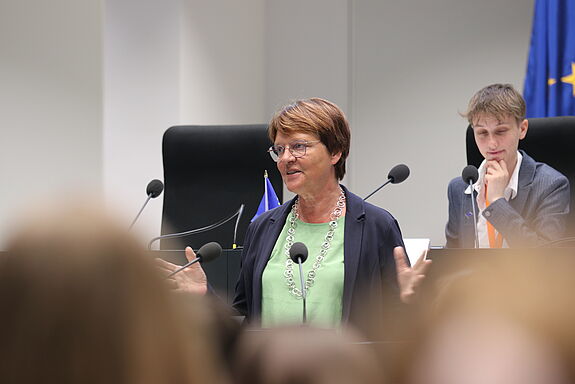 Es gibt auch eine gewisse Aufgabenteilung, thematisch und regional. Hier ist Meta Janssen-Kucz für den Nordwesten Niedersachsens zuständig, thematisch etwa für Sozial-, Gesundheits- und Umweltpolitik.